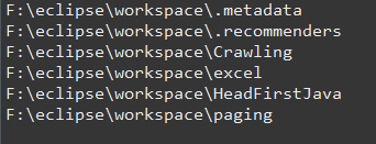 .metadata, .recommenders, Crawling, excel, HeadFirstJava, paging 폴더가 호출된것을 볼 수 있다.