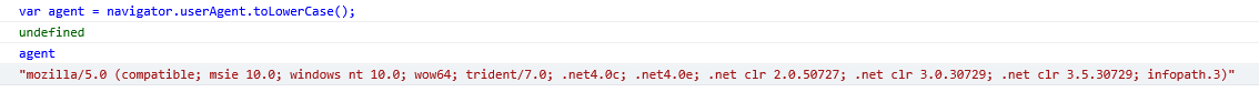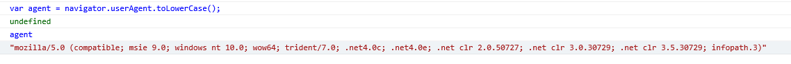 var agent = navigator.userAgent.toLowerCase();
