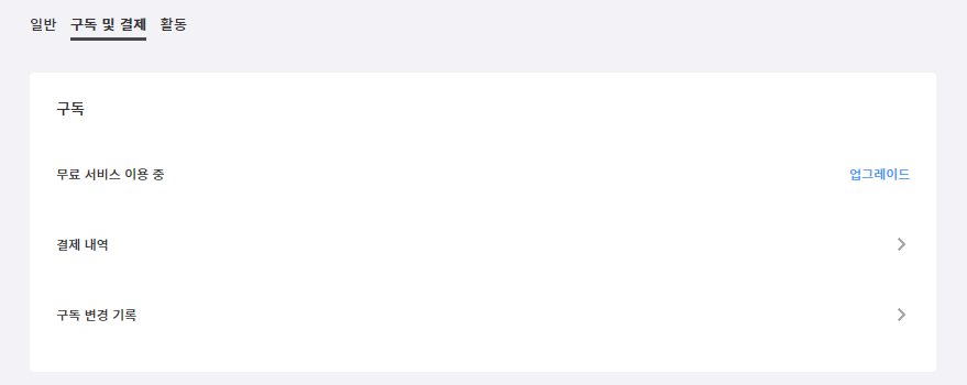 2. 설정 화면에서 구독 및 경제 탭을 클릭한다.