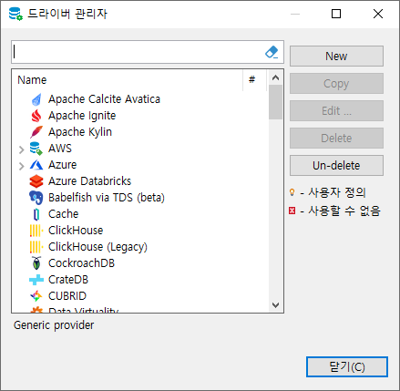 dbeaver를 처음 설치하면 tibero 데이터베이스가 없다.