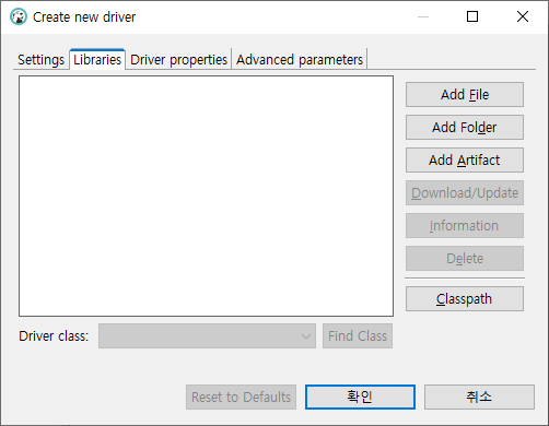 tibero에 접속하기 위해서는 드라이버 매지저를 통해 드라이버를 등록해야 사용할 수 있다.