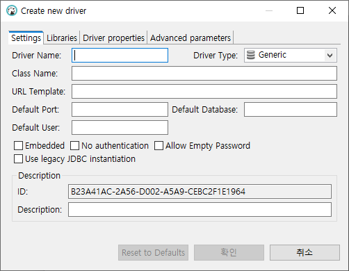 - URL Template : jdbc:tibero:thin:@{host}:{port}:{database name}