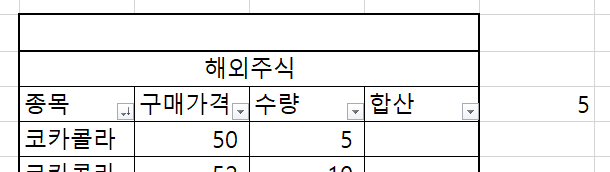 D5:D18은 해외주식 수량의 범위를 나타낸다. D5 ~ D18까지의 범위를 선택했다.