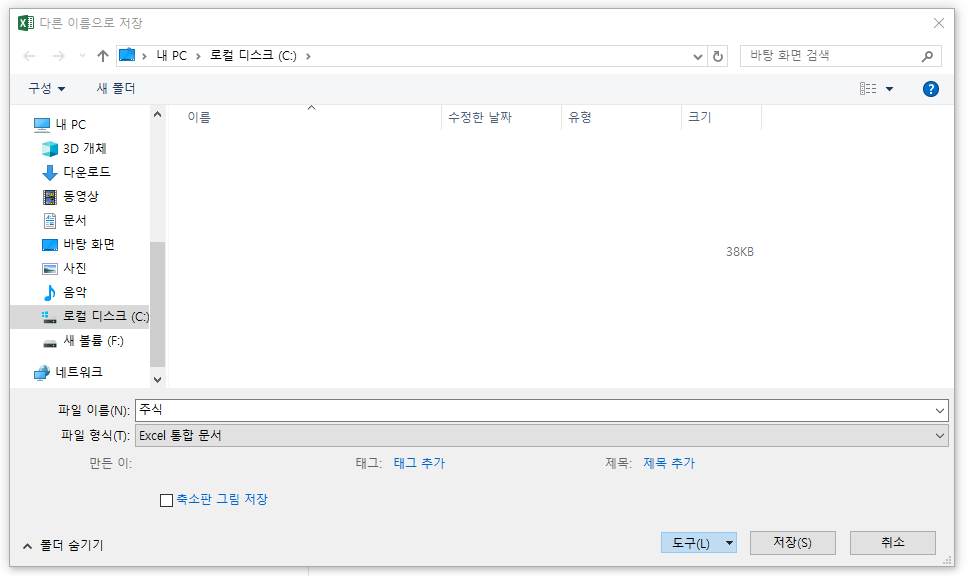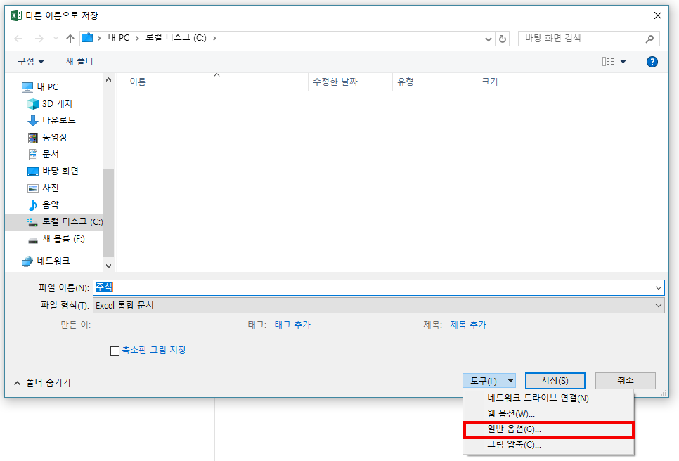 다른이름으로 저장화면에서 저장버튼 옆에 도구(L)의 아래방향 화살표를 누르면
